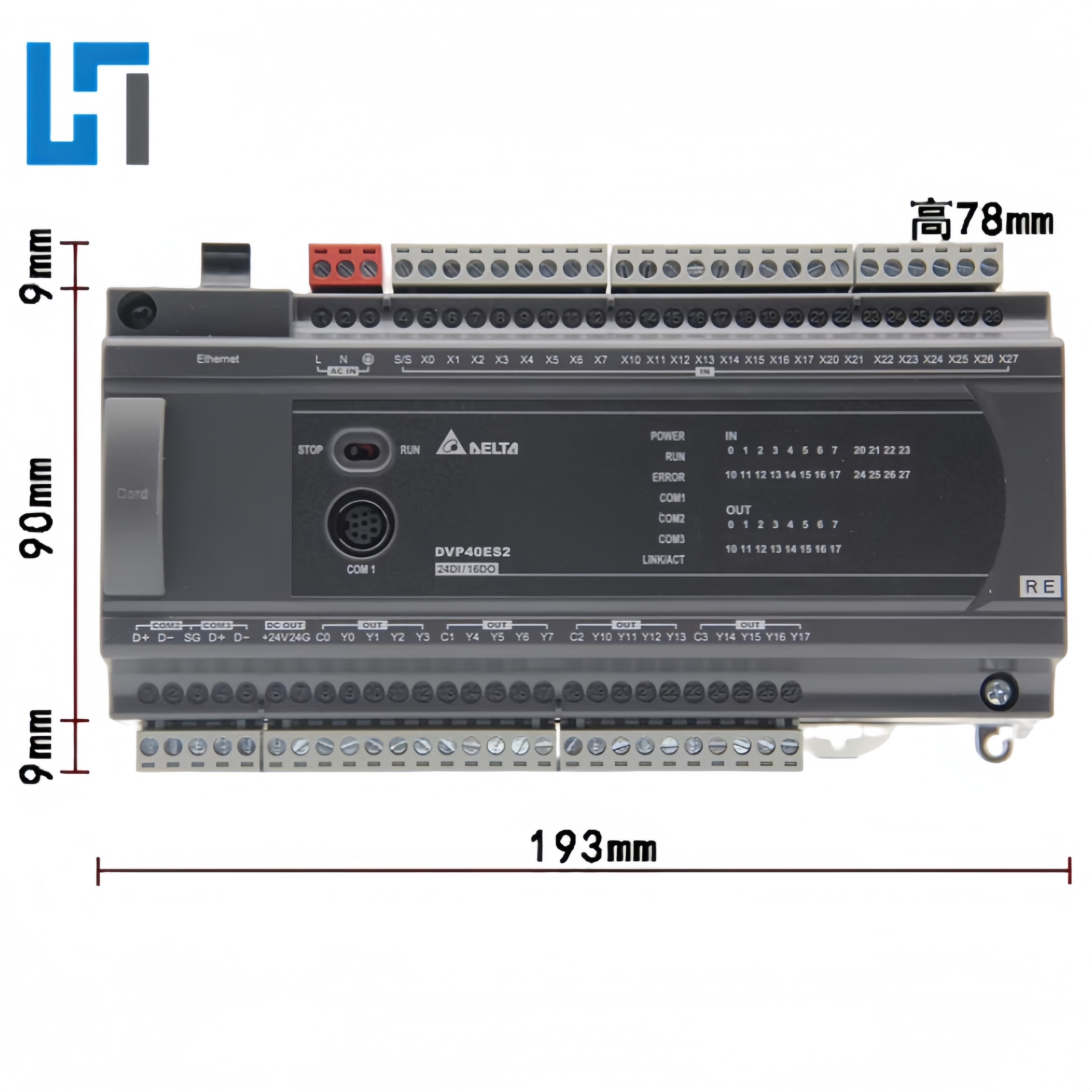 24 Inputs / 16 Outputs for More I/O Capacity: Provides 24 input and 16 output points, totaling 40 I/O points. Compared to 32-point models (e.g., DVP32ES200RE), it offers more input capacity, making it ideal for medium-sized automation equipment that requires connecting a large number of sensors or switch signals, reducing the need for external expansion modules.